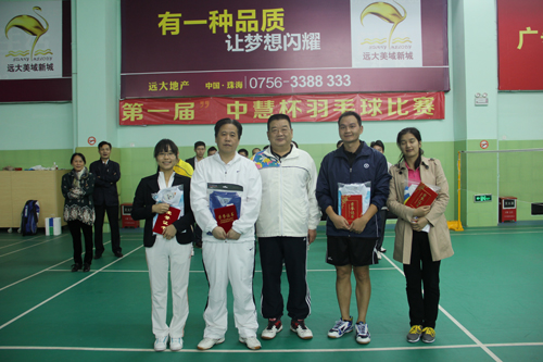 2013 年11 月26 日晚,2013“中慧杯”羽毛球赛珠海赛区在远大美域羽毛球馆拉开帷幕。比赛设男单、男双、女单、混双四个项目,混双、男双采用一局30 分单淘赛制,男单、女单采用小组循环方式,比赛既精彩又激烈。赛前所有选手精力充沛,信心十足,响应“我参与,我快乐”的口号,展现出良好的精神风貌。
