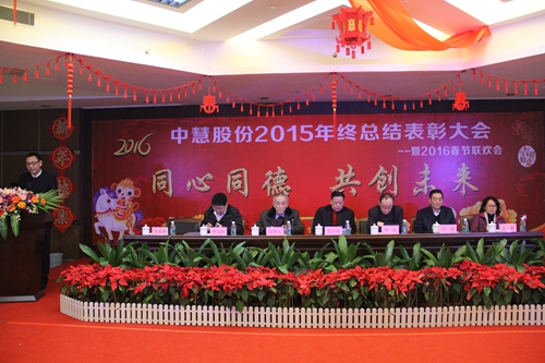 | 金猴献瑞财源广,中慧呈祥人气旺。2015年1月23日,珠海中慧科技园一派喜气洋洋的景象,上午10时,珠海中慧微电子有限公司2015年度工作总结暨表彰大会正式开始,董事长梁克难先生、股东石强先生、独立董事周德元先生、董事李旭先生、首席专家顾问李先怀先生、总裁朱家训先生、监事会主席吉琳女士出席会议并在主席台前台就坐。 公司全体员工聚集一堂,认真听取了朱家训总裁做的2015年度工作总结报告,报告内容全面、客观,字里行间透露出中慧人奋勇争先的拼搏精神,令人鼓舞、催人奋进,不时赢得阵阵热烈的掌声。同时,报告也指出了现阶段工作中存在的问题与不足,并对公司2016年的重点工作做出了新的部署和安排。